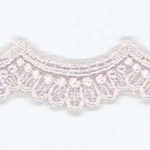 SHINDO社製(S.I.C.)チュールエンブロイダリーレースです。編みレースと刺繍レースを組み合わせ、軽やかなチュールの編み目と細やかな刺繍とのハーモニーが美しい、ウエーブラインのレースです。カジュアル衣料やダンス衣装、子供服、インテリア雑貨などのご用途向けにオススメです。また、染色や洗濯時の収縮を最小限に抑えるために、生成りを含む全てのカラーに防縮加工が施されておりますので、生地に縫い付けたレースが洗濯したらすごく縮んでしまった...(T_T) といった惨事を回避できます。※メートルカット品は、実物確認用のサンプルまたはご試作用途向けに販売をいたしております(数量「3」でお求めいただくと、3メートルを1本でお届け)。巻でのご購入前に必ずメートルカット品にて実物をご確認ください。