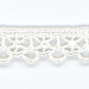 SHINDO社製(S.I.C.)ケミカルエンブロイダリーレースです。刺繍でありながら糸を編んだような透け感が特徴の片側ウエーブラインのレースです。カジュアル衣料やダンス衣装、子供服、インテリア雑貨などのご用途向けにオススメです。また、染色や洗濯時の収縮を最小限に抑えるために、生成りを含む全てのカラーに防縮加工が施されておりますので、生地に縫い付けたレースが洗濯したらすごく縮んでしまった...(T_T) といった惨事を回避できます。※メートルカット品は、実物確認用のサンプルまたはご試作用途向けに販売をいたしております(数量「3」でお求めいただくと、3メートルを1本でお届け)。巻でのご購入前に必ずメートルカット品にて実物をご確認ください。