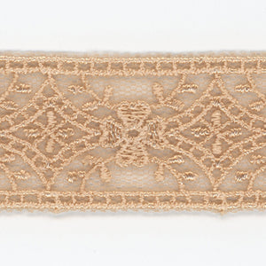 SHINDO社製(S.I.C.)チュールエンブロイダリーレースです。編みレースと刺繍レースを組み合わせ、軽やかなチュールの編み目と細やかな刺繍とのハーモニーが美しい、花柄と幾何学模様のレースです。カジュアル衣料やダンス衣装、子供服、インテリア雑貨などのご用途向けにオススメです。また、染色や洗濯時の収縮を最小限に抑えるために、生成りを含む全てのカラーに防縮加工が施されておりますので、生地に縫い付けたレースが洗濯したらすごく縮んでしまった...(T_T) といった惨事を回避できます。※メートルカット品は、実物確認用のサンプルまたはご試作用途向けに販売をいたしております(数量「3」でお求めいただくと、3メートルを1本でお届け)。巻でのご購入前に必ずメートルカット品にて実物をご確認ください。