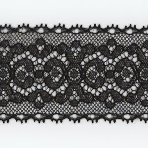 SHINDO社製(S.I.C.)ジャガードトリミングレースです。ラッセル織機で織られたモダンなデザインのレースで、複雑かつ繊細な模様でも薄く平らなことも特徴の一つです。カジュアル衣料やダンス衣装、アンダーウエア、子供服、インテリア雑貨などのご用途向けにオススメです。また、染色や洗濯時の収縮を最小限に抑えるために、生成りを含む全てのカラーに防縮加工が施されておりますので、生地に縫い付けたレースが洗濯したらすごく縮んでしまった...(T_T) といった惨事を回避できます。※メートルカット品は、実物確認用のサンプルまたはご試作用途向けに販売をいたしております(数量「3」でお求めいただくと、3メートルを1本でお届け)。巻でのご購入前に必ずメートルカット品にて実物をご確認ください。