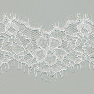 SHINDO社製(S.I.C.)リバートリミングレースです。緻密で細やかなフローラル柄とジグザグけ形状が特徴で、リバーレース織機は使用する糸数も多く、構造が複雑なため生産するには高い技術力が必要とされる技法の希少性の高いレースです。レディース衣料やダンス衣装、インテリアなどの雑貨向けのご用途にオススメです。また、染色や洗濯時の収縮を最小限に抑えるために、生成りを含む全てのカラーに防縮加工が施されておりますので、生地に縫い付けたレースが洗濯したらすごく縮んでしまった...(T_T) といった惨事を回避できます。※メートルカット品は、実物確認用のサンプルまたはご試作用途向けに販売をいたしております(数量「3」でお求めいただくと、3メートルを1本でお届け)。巻でのご購入前に必ずメートルカット品にて実物をご確認ください。