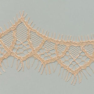 SHINDO社製(S.I.C.)リバートリミングレースです。緻密で細やかな柄行きとウエーブラインが特徴で、リバーレース織機は使用する糸数も多く、構造が複雑なため生産するには高い技術力が必要とされる技法の希少性の高いレースです。レディース衣料やダンス衣装、インテリアなどの雑貨向けのご用途にオススメです。また、染色や洗濯時の収縮を最小限に抑えるために、生成りを含む全てのカラーに防縮加工が施されておりますので、生地に縫い付けたレースが洗濯したらすごく縮んでしまった...(T_T) といった惨事を回避できます。※メートルカット品は、実物確認用のサンプルまたはご試作用途向けに販売をいたしております(数量「3」でお求めいただくと、3メートルを1本でお届け)。巻でのご購入前に必ずメートルカット品にて実物をご確認ください。