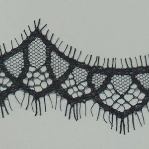 SHINDO社製(S.I.C.)リバートリミングレースです。緻密で細やかな柄行きとウエーブラインが特徴で、リバーレース織機は使用する糸数も多く、構造が複雑なため生産するには高い技術力が必要とされる技法の希少性の高いレースです。レディース衣料やダンス衣装、インテリアなどの雑貨向けのご用途にオススメです。また、染色や洗濯時の収縮を最小限に抑えるために、生成りを含む全てのカラーに防縮加工が施されておりますので、生地に縫い付けたレースが洗濯したらすごく縮んでしまった...(T_T) といった惨事を回避できます。※メートルカット品は、実物確認用のサンプルまたはご試作用途向けに販売をいたしております(数量「3」でお求めいただくと、3メートルを1本でお届け)。巻でのご購入前に必ずメートルカット品にて実物をご確認ください。