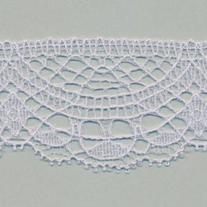SHINDO社製(S.I.C.)リバートリミングレースです。緻密で細やかな柄行きと片側ウエーブラインが特徴で、リバーレース織機は使用する糸数も多く、構造が複雑なため生産するには高い技術力が必要とされる技法の希少性の高いレースです。レディース衣料やダンス衣装、インテリアなどの雑貨向けのご用途にオススメです。また、染色や洗濯時の収縮を最小限に抑えるために、生成りを含む全てのカラーに防縮加工が施されておりますので、生地に縫い付けたレースが洗濯したらすごく縮んでしまった...(T_T) といった惨事を回避できます。※メートルカット品は、実物確認用のサンプルまたはご試作用途向けに販売をいたしております(数量「3」でお求めいただくと、3メートルを1本でお届け)。巻でのご購入前に必ずメートルカット品にて実物をご確認ください。
