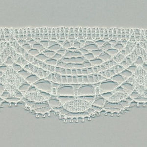 SHINDO社製(S.I.C.)リバートリミングレースです。緻密で細やかな柄行きと片側ウエーブラインが特徴で、リバーレース織機は使用する糸数も多く、構造が複雑なため生産するには高い技術力が必要とされる技法の希少性の高いレースです。レディース衣料やダンス衣装、インテリアなどの雑貨向けのご用途にオススメです。また、染色や洗濯時の収縮を最小限に抑えるために、生成りを含む全てのカラーに防縮加工が施されておりますので、生地に縫い付けたレースが洗濯したらすごく縮んでしまった...(T_T) といった惨事を回避できます。※メートルカット品は、実物確認用のサンプルまたはご試作用途向けに販売をいたしております(数量「3」でお求めいただくと、3メートルを1本でお届け)。巻でのご購入前に必ずメートルカット品にて実物をご確認ください。