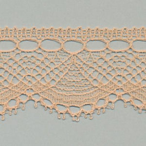 SHINDO社製(S.I.C.)リバートリミングレースです。緻密で細やかな柄行きと片側ウエーブラインが特徴で、リバーレース織機は使用する糸数も多く、構造が複雑なため生産するには高い技術力が必要とされる技法の希少性の高いレースです。レディース衣料やダンス衣装、インテリアなどの雑貨向けのご用途にオススメです。また、染色や洗濯時の収縮を最小限に抑えるために、生成りを含む全てのカラーに防縮加工が施されておりますので、生地に縫い付けたレースが洗濯したらすごく縮んでしまった...(T_T) といった惨事を回避できます。※メートルカット品は、実物確認用のサンプルまたはご試作用途向けに販売をいたしております(数量「3」でお求めいただくと、3メートルを1本でお届け)。巻でのご購入前に必ずメートルカット品にて実物をご確認ください。