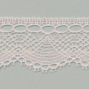 SHINDO社製(S.I.C.)リバートリミングレースです。緻密で細やかな柄行きと片側ウエーブラインが特徴で、リバーレース織機は使用する糸数も多く、構造が複雑なため生産するには高い技術力が必要とされる技法の希少性の高いレースです。レディース衣料やダンス衣装、インテリアなどの雑貨向けのご用途にオススメです。また、染色や洗濯時の収縮を最小限に抑えるために、生成りを含む全てのカラーに防縮加工が施されておりますので、生地に縫い付けたレースが洗濯したらすごく縮んでしまった...(T_T) といった惨事を回避できます。※メートルカット品は、実物確認用のサンプルまたはご試作用途向けに販売をいたしております(数量「3」でお求めいただくと、3メートルを1本でお届け)。巻でのご購入前に必ずメートルカット品にて実物をご確認ください。