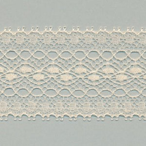 SHINDO社製(S.I.C.)リバートリミングレースです。緻密で細やかなリングライン柄が特徴で、リバーレース織機は使用する糸数も多く、構造が複雑なため生産するには高い技術力が必要とされる技法の希少性の高いレースです。レディース衣料やダンス衣装、インテリアなどの雑貨向けのご用途にオススメです。また、染色や洗濯時の収縮を最小限に抑えるために、生成りを含む全てのカラーに防縮加工が施されておりますので、生地に縫い付けたレースが洗濯したらすごく縮んでしまった...(T_T) といった惨事を回避できます。※メートルカット品は、実物確認用のサンプルまたはご試作用途向けに販売をいたしております(数量「3」でお求めいただくと、3メートルを1本でお届け)。巻でのご購入前に必ずメートルカット品にて実物をご確認ください。