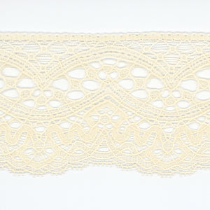 SHINDO社製(S.I.C.)リバートリミングレースです。ランダムなレースホールとダイナミックな柄行が特徴で、リバーレース織機は使用する糸数も多く、構造が複雑なため生産するには高い技術力が必要とされる技法の希少性の高いレースです。レディース衣料やダンス衣装、インテリアなどの雑貨向けのご用途にオススメです。また、染色や洗濯時の収縮を最小限に抑えるために、生成りを含む全てのカラーに防縮加工が施されておりますので、生地に縫い付けたレースが洗濯したらすごく縮んでしまった...(T_T) といった惨事を回避できます。※メートルカット品は、実物確認用のサンプルまたはご試作用途向けに販売をいたしております(数量「3」でお求めいただくと、3メートルを1本でお届け)。巻でのご購入前に必ずメートルカット品にて実物をご確認ください。