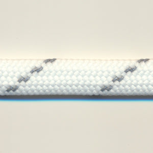 SHINDO社製(S.I.C.)再帰反射コード(平)です。3M社製のScotchlite反射材を超極細スリット糸にし、編み込んだ袋織(筒状)の平紐コードで、輝度もしっかりとあり、夜間の視認性を向上し安全性を高めてくれるアイテムです。また、反射材の銀色部分がアクセントデザインになっているため、アウトドアやスポーツ向けだけではなく、子供向けの衣料品やワーキングウエアとの相性もよく、リュックサックや靴紐のご用途などにもオススメです。※メートルカット品は、実物確認用のサンプルまたはご試作用途向けに販売をいたしております(数量「3」でお求めいただくと、3メートルを1本でお届け)。巻でのご購入前に必ずメートルカット品にて実物をご確認ください。