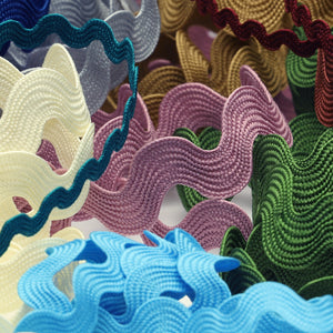 SHINDO社製(S.I.C.)ポリエステル山道テープです。物性の良いポリエステル糸で作られた可愛らしいテープです。山の道のようにジグザグなので、叩きつけるだけで「かわいい」表現ができてしまうなアイテムで、ベビーやキッズ用品のアクセント装飾としてオススメです。※メートルカット品は、実物確認用のサンプルまたはご試作用途向けに販売をいたしております(数量「3」でお求めいただくと、3メートルを1本でお届け)。巻でのご購入前に必ずメートルカット品にて実物をご確認ください。