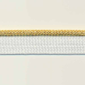 • SHINDO社製(S.I.C.)メタリックパイピングです。玉部分に本金糸/銀糸を使用した高級感あふれる製紐パイピングです。生地への影響を考慮して、白、黒、玉と同色の縫い代になっていますので、薄手の生地の裁ち目処理や縁飾りにオススメです。※メートルカット品は、実物確認用のサンプルまたはご試作用途向けに販売をいたしております(数量「3」でお求めいただくと、3メートルを1本でお届け)。巻でのご購入前に必ずメートルカット品にて実物をご確認ください。
