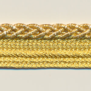 SHINDO社製(S.I.C.)メタリックパイピングです。玉部分に金銀ラメを使用し、クロス状に組んだ意匠性の高い上品な輝きの高級感あふれる製紐パイピングです。存在感があり華やかですので、舞台衣装やドレスの生地の裁ち目処理や縁飾りにオススメのテープです。※メートルカット品は、実物確認用のサンプルまたはご試作用途向けに販売をいたしております(数量「3」でお求めいただくと、3メートルを1本でお届け)。巻でのご購入前に必ずメートルカット品にて実物をご確認ください。