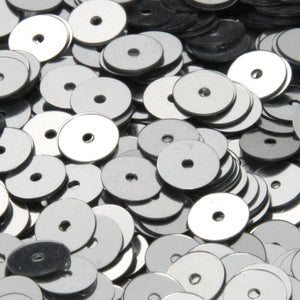 3トーンのメタリックグラデーションが特徴で、フラットラウンド型のフランス製高級スパングルです(穴は中央)。ドライクリーニングはできないものの、安価でしっかりした厚みがあります。6mmサイズのみですが、全72色(透明、不透明タイプ含め)をご用意。染色ロットは多少のユラギがございます。