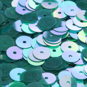 3トーンの透明グラデーションが特徴で、フラットラウンド型のフランス製高級スパングルです(穴は中央)。ドライクリーニングはできないものの、安価でしっかりした厚みがあります。6mmサイズのみですが、全72色(メタリック、不透明タイプ含め)をご用意。染色ロットは多少のユラギがございます。