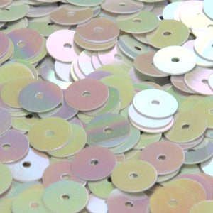 3トーンの不透明グラデーションが特徴で、フラットラウンド型のフランス製高級スパングルです(穴は中央)。ドライクリーニングはできないものの、安価でしっかりした厚みがあります。6mmサイズのみですが、全72色(メタリック、透明タイプ含め)をご用意。染色ロットは多少のユラギがございます。