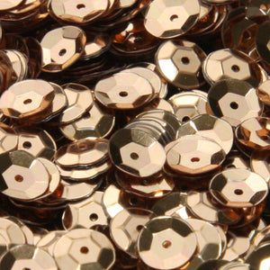 3トーンのメタリックグラデーションが特徴で、亀甲型のフランス製高級スパングルです(穴は中央)。ドライクリーニングはできないものの、安価でしっかりした厚みがあります。6mmサイズのみですが、全72色(透明、不透明タイプ含め)をご用意。染色ロットは多少のユラギがございます。