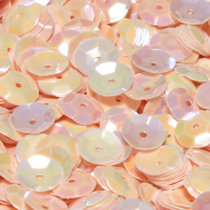 3トーンの不透明グラデーションが特徴で、亀甲型のフランス製高級スパングルです(穴は中央)。ドライクリーニングはできないものの、安価でしっかりした厚みがあります。6mmサイズのみですが、全72色(メタリック、透明タイプ含め)をご用意。染色ロットは多少のユラギがございます。