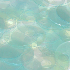 トップラージホールが特徴で、フラットラウンド型のフランス製高級スパングルです(穴は6mm)。ドライクリーニングはできないものの、バックなどの雑貨やアクセサリー用として人気があります。20mmサイズのみですが、全26色をご用意。