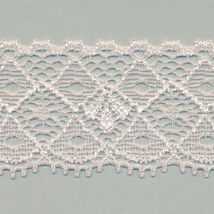 SHINDO社製(S.I.C.)ストレッチトリミングレースです。ラッセル織機で織られた伸縮性のある幾何学柄レースで、複雑かつ繊細な模様でも薄く平らなことも特徴の一つです。カジュアル衣料やダンス衣装、アンダーウエア、子供服、インテリア雑貨などのご用途向けにオススメです。また、染色や洗濯時の収縮を最小限に抑えるために、生成りを含む全てのカラーに防縮加工が施されておりますので、生地に縫い付けたレースが洗濯したらすごく縮んでしまった...(T_T) といった惨事を回避できます。※メートルカット品は、実物確認用のサンプルまたはご試作用途向けに販売をいたしております(数量「3」でお求めいただくと、3メートルを1本でお届け)。巻でのご購入前に必ずメートルカット品にて実物をご確認ください。
