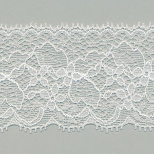 SHINDO社製(S.I.C.)ストレッチトリミングレースです。ラッセル織機で織られた伸縮性のあるフローラルとリーフ模様のレースで、複雑かつ繊細な模様でも薄く平らなことも特徴の一つです。カジュアル衣料やダンス衣装、アンダーウエア、子供服、インテリア雑貨などのご用途向けにオススメです。また、染色や洗濯時の収縮を最小限に抑えるために、生成りを含む全てのカラーに防縮加工が施されておりますので、生地に縫い付けたレースが洗濯したらすごく縮んでしまった...(T_T) といった惨事を回避できます。※メートルカット品は、実物確認用のサンプルまたはご試作用途向けに販売をいたしております(数量「3」でお求めいただくと、3メートルを1本でお届け)。巻でのご購入前に必ずメートルカット品にて実物をご確認ください。