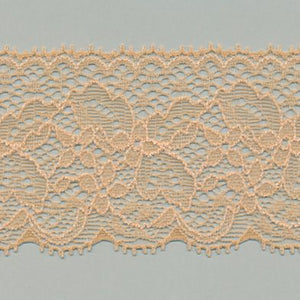 SHINDO社製(S.I.C.)ストレッチトリミングレースです。ラッセル織機で織られた伸縮性のあるフローラルとリーフ模様のレースで、複雑かつ繊細な模様でも薄く平らなことも特徴の一つです。カジュアル衣料やダンス衣装、アンダーウエア、子供服、インテリア雑貨などのご用途向けにオススメです。また、染色や洗濯時の収縮を最小限に抑えるために、生成りを含む全てのカラーに防縮加工が施されておりますので、生地に縫い付けたレースが洗濯したらすごく縮んでしまった...(T_T) といった惨事を回避できます。※メートルカット品は、実物確認用のサンプルまたはご試作用途向けに販売をいたしております(数量「3」でお求めいただくと、3メートルを1本でお届け)。巻でのご購入前に必ずメートルカット品にて実物をご確認ください。