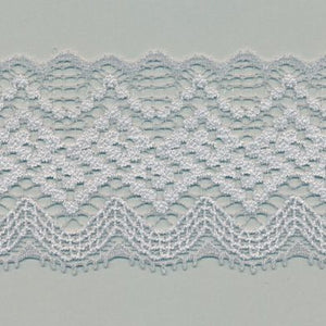 SHINDO社製(S.I.C.)ストレッチトリミングレースです。ラッセル織機で織られた伸縮性のある幾何学柄のレースで、複雑かつ繊細な模様でも薄く平らなことも特徴の一つです。カジュアル衣料やダンス衣装、アンダーウエア、子供服、インテリア雑貨などのご用途向けにオススメです。また、染色や洗濯時の収縮を最小限に抑えるために、生成りを含む全てのカラーに防縮加工が施されておりますので、生地に縫い付けたレースが洗濯したらすごく縮んでしまった...(T_T) といった惨事を回避できます。※メートルカット品は、実物確認用のサンプルまたはご試作用途向けに販売をいたしております(数量「3」でお求めいただくと、3メートルを1本でお届け)。巻でのご購入前に必ずメートルカット品にて実物をご確認ください。
