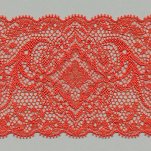 SHINDO社製(S.I.C.)ストレッチトリミングレースです。ラッセル織機で織られた伸縮性のあるダイナミックな模様のレースで、複雑かつ繊細な模様でも薄く平らなことも特徴の一つです。カジュアル衣料やダンス衣装、アンダーウエア、子供服、インテリア雑貨などのご用途向けにオススメです。また、染色や洗濯時の収縮を最小限に抑えるために、生成りを含む全てのカラーに防縮加工が施されておりますので、生地に縫い付けたレースが洗濯したらすごく縮んでしまった...(T_T) といった惨事を回避できます。※メートルカット品は、実物確認用のサンプルまたはご試作用途向けに販売をいたしております(数量「3」でお求めいただくと、3メートルを1本でお届け)。巻でのご購入前に必ずメートルカット品にて実物をご確認ください。