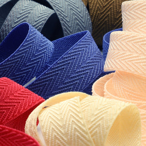 SHINDO社製(S.I.C.)杉綾ストレッチテープです。ニシンの骨の様な織り模様の伸縮性ヘリンボーンテープです。日本製ですのでゴムの耐久性も高く、長く安心してお使いいただけます。カジュアル衣料やスポーツアパレル、雑貨向けのご用途にオススメです。7x7mmや9x9mmサイズはバインダー(テープ中央部に折れ目加工が施されており、袖や裾部分などの布端を容易に挟み込み、縁取りテープとして簡単&綺麗に縫い付けられるテープ)タイプです。※メートルカット品は、実物確認用のサンプルまたはご試作用途向けに販売をいたしております(数量「3」でお求めいただくと、3メートルを1本でお届け)。巻でのご購入前に必ずメートルカット品にて実物をご確認ください。