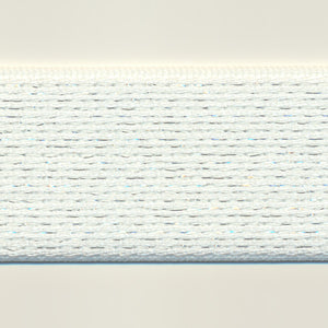 SHINDO社製(S.I.C.)ラメウエストストレッチテープです。サテン調の上品な光沢、シルバー色のラメ、そしてしっかりとした厚みが特徴の伸縮性テープになります。ポリウレタンゴムを採用しておりソフトな肌触り(ラメもザラザラせず、肌当たりが優しい)のゴムで、ウェストゴムとしてのご使用にオススメです。※メートルカット品は、実物確認用のサンプルまたはご試作用途向けに販売をいたしております(数量「3」でお求めいただくと、3メートルを1本でお届け)。巻でのご購入前に必ずメートルカット品にて実物をご確認ください。