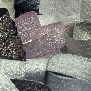 SHINDO社製(S.I.C.)メタリックストレッチテープ(シルバー)です。レディース全般での使用を前提に、銀色の極細ラメの「ラメ感」が強調されたテープで、ベースにナイロン糸を使用することで薄手で柔らかいといった特徴も兼ね備えています。また、バインダータイプでは表に出る面(片面)にのみラメを配し、肌当たりにも考慮された商品です。テープとバインダー両方のバリエーションがありますので、挟み込みとたたき付けのセット使いにもオススメです。7x7mmや9x9mmサイズはバインダー(テープ中央部に折れ目加工が施されており、袖や裾部分などの布端を容易に挟み込み、縁取りテープとして簡単&綺麗に縫い付けられるテープ)タイプです。※メートルカット品は、実物確認用のサンプルまたはご試作用途向けに販売をいたしております(数量「3」でお求めいただくと、3メートルを1本でお届け)。巻でのご購入前に必ずメートルカット品にて実物をご確認ください。