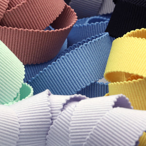 SHINDO社製(S.I.C.)ポリエステルペタシャムリボン(ソフトストレッチ)です。ポリエステル100%(ポリウレタン不使用)の物性の良さと適度なストレッチ性(ソフトストレッチ)が特長で、カーブにも当然ついていきますので、縫製時の馴染みも良いリボンです。通常のペタシャムリボンに比べ、腰部分の補強やデザインでの使用が多いですが、ソフトストレッチ生地とあわせてのご利用もオススメです。10x10mmや12x12mm、15x15mmサイズはバインダー(テープ中央部に折れ目加工が施されており、袖や裾部分などの布端を容易に挟み込み、縁取りテープとして簡単&綺麗に縫い付けられるテープ)タイプです。※メートルカット品は、実物確認用のサンプルまたはご試作用途向けに販売をいたしております(数量「3」でお求めいただくと、3メートルを1本でお届け)。巻でのご購入前に必ずメートルカット品にて実物をご確認ください。