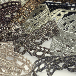 SHINDO社製(S.I.C.)アンティークメタリックトリミングブレードです。繊細で奥深いアンティーク調のメタリック感とシックなカラーが特徴のトーションレースです。インテリアや小物、雑貨向けなどのアクセント使いにオススメです。※メートルカット品は、実物確認用のサンプルまたはご試作用途向けに販売をいたしております(数量「3」でお求めいただくと、3メートルを1本でお届け)。巻でのご購入前に必ずメートルカット品にて実物をご確認ください。