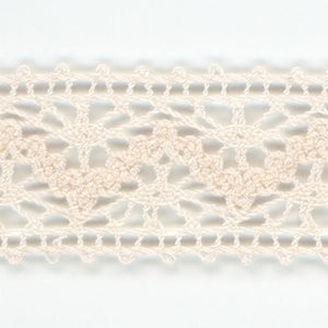 SHINDO社製(S.I.C.)トーションレースです。天然繊維の綿100%で作られた、素朴で温かみのあるナチュラルテイストで両端ピコットレースです。細番手の糸を使用しており、軽やかで繊細な風合いも特徴の一つで、子供服や雑貨向けのご用途におススメの資材です。また、染色や洗濯時の収縮を最小限に抑えるために、生成りを含む全てのカラーに防縮加工が施されておりますので、生地に縫い付けたレースが洗濯したらすごく縮んでしまった...(T_T) といった惨事を回避できます。※メートルカット品は、実物確認用のサンプルまたはご試作用途向けに販売をいたしております(数量「3」でお求めいただくと、3メートルを1本でお届け)。巻でのご購入前に必ずメートルカット品にて実物をご確認ください。