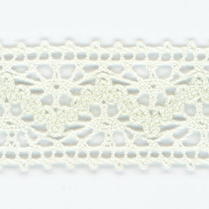 SHINDO社製(S.I.C.)トーションレースです。天然繊維の綿100%で作られた、素朴で温かみのあるナチュラルテイストで両端ピコットレースです。細番手の糸を使用しており、軽やかで繊細な風合いも特徴の一つで、子供服や雑貨向けのご用途におススメの資材です。また、染色や洗濯時の収縮を最小限に抑えるために、生成りを含む全てのカラーに防縮加工が施されておりますので、生地に縫い付けたレースが洗濯したらすごく縮んでしまった...(T_T) といった惨事を回避できます。※メートルカット品は、実物確認用のサンプルまたはご試作用途向けに販売をいたしております(数量「3」でお求めいただくと、3メートルを1本でお届け)。巻でのご購入前に必ずメートルカット品にて実物をご確認ください。