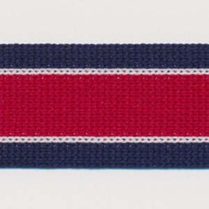 SHINDO社製(S.I.C.)ニットラインテープです。薄手の3色ストライプ柄(2色ストイプに見えますが、中央カラー両サイドにアクセントカラーが配されています)の片面ニットテープで、適度な伸縮性がありジャージーなどのストレッチ性のある生地との相性が良くオススメです。※メートルカット品は、実物確認用のサンプルまたはご試作用途向けに販売をいたしております(数量「3」でお求めいただくと、3メートルを1本でお届け)。巻でのご購入前に必ずメートルカット品にて実物をご確認ください。