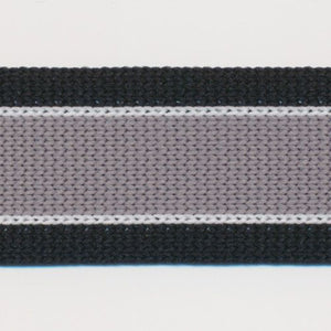 SHINDO社製(S.I.C.)ニットラインテープです。薄手の3色ストライプ柄(2色ストイプに見えますが、中央カラー両サイドにアクセントカラーが配されています)の片面ニットテープで、適度な伸縮性がありジャージーなどのストレッチ性のある生地との相性が良くオススメです。※メートルカット品は、実物確認用のサンプルまたはご試作用途向けに販売をいたしております(数量「3」でお求めいただくと、3メートルを1本でお届け)。巻でのご購入前に必ずメートルカット品にて実物をご確認ください。