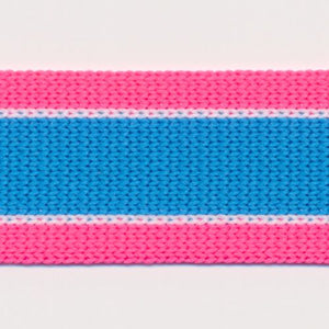 SHINDO社製(S.I.C.)ニットラインテープです。薄手の3色ストライプ柄(2色ストイプに見えますが、中央カラー両サイドにアクセントカラーが配されています)の片面ニットテープで、適度な伸縮性がありジャージーなどのストレッチ性のある生地との相性が良くオススメです。※メートルカット品は、実物確認用のサンプルまたはご試作用途向けに販売をいたしております(数量「3」でお求めいただくと、3メートルを1本でお届け)。巻でのご購入前に必ずメートルカット品にて実物をご確認ください。