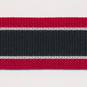 SHINDO社製(S.I.C.)ニットラインテープです。薄手の3色ストライプ柄(2色ストイプに見えますが、中央カラー両サイドにアクセントカラーが配されています)の片面ニットテープで、適度な伸縮性がありジャージーなどのストレッチ性のある生地との相性が良くオススメです。※メートルカット品は、実物確認用のサンプルまたはご試作用途向けに販売をいたしております(数量「3」でお求めいただくと、3メートルを1本でお届け)。巻でのご購入前に必ずメートルカット品にて実物をご確認ください。