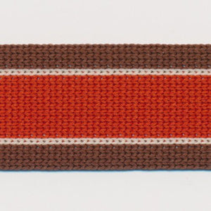 SHINDO社製(S.I.C.)ニットラインテープです。薄手の3色ストライプ柄(2色ストイプに見えますが、中央カラー両サイドにアクセントカラーが配されています)の片面ニットテープで、適度な伸縮性がありジャージーなどのストレッチ性のある生地との相性が良くオススメです。※メートルカット品は、実物確認用のサンプルまたはご試作用途向けに販売をいたしております(数量「3」でお求めいただくと、3メートルを1本でお届け)。巻でのご購入前に必ずメートルカット品にて実物をご確認ください。