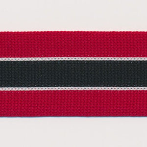 SHINDO社製(S.I.C.)ニットラインテープです。薄手の3色ストライプ柄(2色ストイプに見えますが、中央カラー両サイドにアクセントカラーが配されています)の片面ニットテープで、適度な伸縮性がありジャージーなどのストレッチ性のある生地との相性が良くオススメです。※メートルカット品は、実物確認用のサンプルまたはご試作用途向けに販売をいたしております(数量「3」でお求めいただくと、3メートルを1本でお届け)。巻でのご購入前に必ずメートルカット品にて実物をご確認ください。