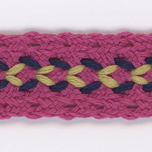 SHINDO社製(S.I.C.)ミックスカラーブレードです。天然繊維の綿100%で作られた温かみのあるナチュラルテイストのブレードで、ハンドメイド風にざっくりと編まれたテープ中央に2色のカラーステッチがアクセントになっています。インテリアや小物、雑貨向けのご用途などにオススメの服飾資材です。※メートルカット品は、実物確認用のサンプルまたはご試作用途向けに販売をいたしております(数量「3」でお求めいただくと、3メートルを1本でお届け)。巻でのご購入前に必ずメートルカット品にて実物をご確認ください。