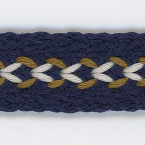 SHINDO社製(S.I.C.)ミックスカラーブレードです。天然繊維の綿100%で作られた温かみのあるナチュラルテイストのブレードで、ハンドメイド風にざっくりと編まれたテープ中央に2色のカラーステッチがアクセントになっています。インテリアや小物、雑貨向けのご用途などにオススメの服飾資材です。※メートルカット品は、実物確認用のサンプルまたはご試作用途向けに販売をいたしております(数量「3」でお求めいただくと、3メートルを1本でお届け)。巻でのご購入前に必ずメートルカット品にて実物をご確認ください。