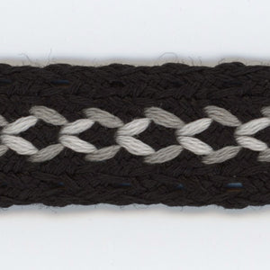 SHINDO社製(S.I.C.)ミックスカラーブレードです。天然繊維の綿100%で作られた温かみのあるナチュラルテイストのブレードで、ハンドメイド風にざっくりと編まれたテープ中央に2色のカラーステッチがアクセントになっています。インテリアや小物、雑貨向けのご用途などにオススメの服飾資材です。※メートルカット品は、実物確認用のサンプルまたはご試作用途向けに販売をいたしております(数量「3」でお求めいただくと、3メートルを1本でお届け)。巻でのご購入前に必ずメートルカット品にて実物をご確認ください。