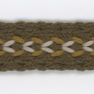 SHINDO社製(S.I.C.)ミックスカラーブレードです。天然繊維の綿100%で作られた温かみのあるナチュラルテイストのブレードで、ハンドメイド風にざっくりと編まれたテープ中央に2色のカラーステッチがアクセントになっています。インテリアや小物、雑貨向けのご用途などにオススメの服飾資材です。※メートルカット品は、実物確認用のサンプルまたはご試作用途向けに販売をいたしております(数量「3」でお求めいただくと、3メートルを1本でお届け)。巻でのご購入前に必ずメートルカット品にて実物をご確認ください。