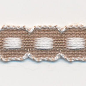 SHINDO社製(S.I.C.)チロルテープです。ボックスステッチが可愛らしく、またリボンの両端(上端と下端)に白いラインが入っているので、アクセントとして映えるリボンです。子供服や小物などの雑貨向けにオススメの服飾資材です。※メートルカット品は、実物確認用のサンプルまたはご試作用途向けに販売をいたしております(数量「3」でお求めいただくと、3メートルを1本でお届け)。巻でのご購入前に必ずメートルカット品にて実物をご確認ください。